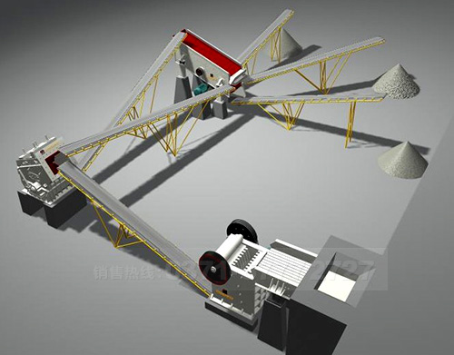 河卵石制沙工藝流程:料倉——振動給料機——粗破(顎式破碎機)——輸送設備(輸送機)——制沙機——輸送設備——篩分設備——成品或制沙機——洗砂機——成品。