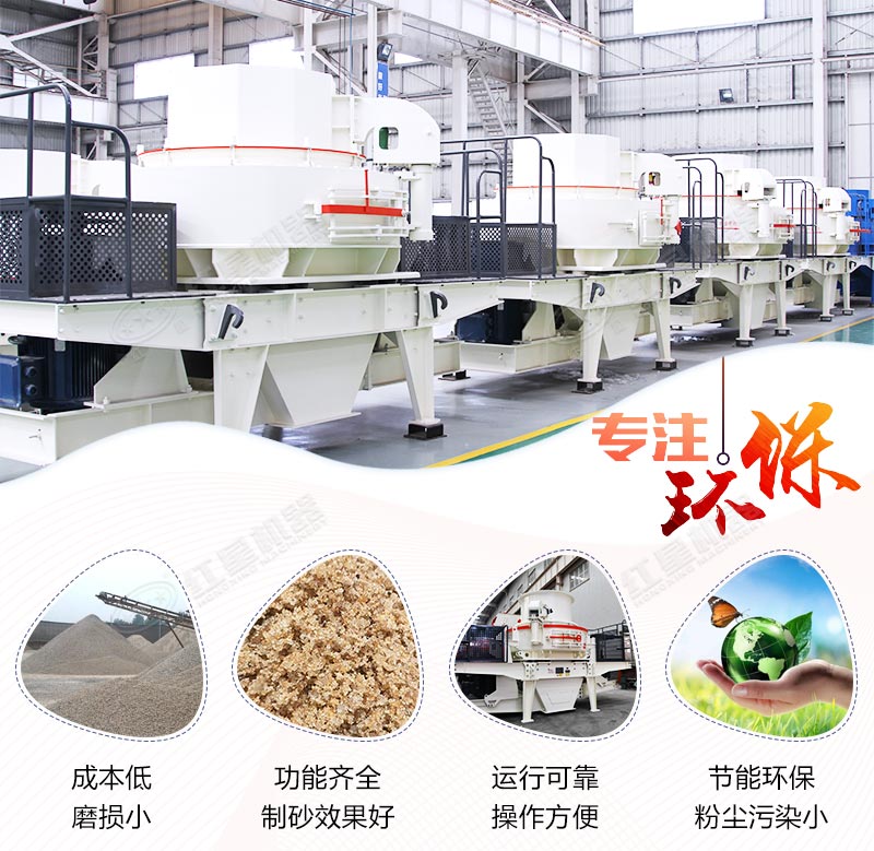 制沙設(shè)備的制砂過(guò)程中,主要是將物料放入破碎腔內(nèi),由破碎部件進(jìn)行敲打、沖擊、研磨等方式。使物料制成所需粒度,由排料口排口,即為成品。在整下破碎過(guò)程中,物料相互自行沖擊破碎,不與金屬元件直接接觸,而是與物料襯層發(fā)生沖擊、磨擦而粉碎,這就減少了角污染,延長(zhǎng)機(jī)械磨損時(shí)間,提高整機(jī)壽命。